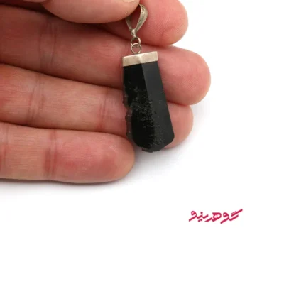 گردنبند تورمالین سیاه اصل با قاب نقره وزن 8.6 گرم ابعاد 4.8 سانتی متر در 1.5 سانتی متر این گردنبند