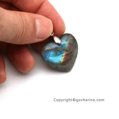 گردنبند سنگ لابرادوریت کانادایی مدل قلبی با قلاب استیل با کیفیت و درخشش رنگ آبی و سرخ زیبا با وزن