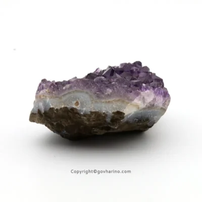 سنگ آمیتیست طبیعی اروگوئه با بلورهای درشت و رنگ زیبا با وزن 154 گرم و ارتفاع 8 سانتی متر و