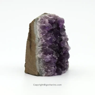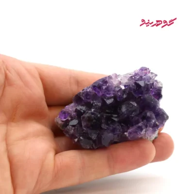 سنگ آمیتیست طبیعی اروگوئه با بلورهای درشت و رنگ زیبا با وزن 101 گرم و ارتفاع 6.5 سانتی متر و