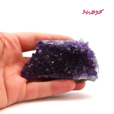 سنگ آمیتیست طبیعی اروگوئه با بلورهای درشت و رنگ زیبا با وزن 116 گرم و ارتفاع 6.5 سانتی متر و