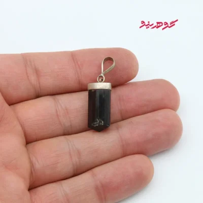 گردنبند تورمالین سیاه اصل با قاب نقره وزن 4.7 گرم ابعاد 3.3 سانتی متر در 1 سانتی متر این گردنبند