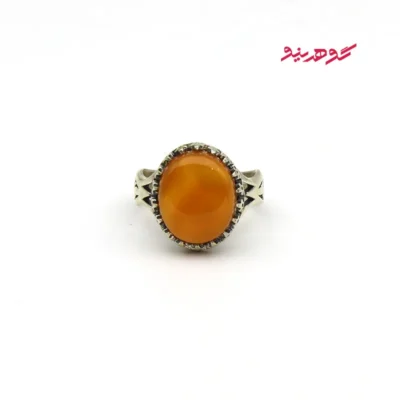 انگشتر شرف الشمس یا انگشتر عقیق زرد زنانه با کیفیت و رنگ عالی، جنس رکاب این انگشتر زنانه، نقره عیار